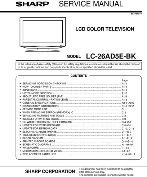 At present you are looking regarding an Sharp Lc 26ad5e Bk Tv Service Manual example of which we provide here within some kind of document formats such as PDF, Doc, Strength Point, as well as images of which will make it easier for you to create an Sharp Lc 26ad5e Bk Tv Service Manual yourself. For a more clear look, you may open several examples below. Each of the illustrations about Sharp Lc 26ad5e Bk Tv Service Manual with this web site, we get from a number of sources so you may create a better document of your own.
